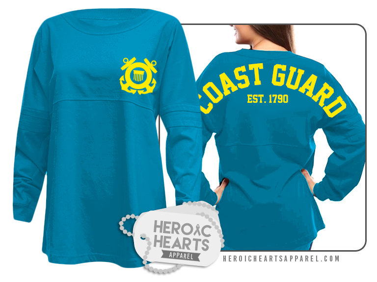 This oversized jersey is perfect to show your support for the U.S. Coast Guard and/or your Coastie! This oversized fit pullover is constructed of 6.6 oz; 100% cotton jersey. Includes double athletic stripes on the sleeves. Our spirit jerseys are garment-dyed for a vintage feel and a roomy fit.