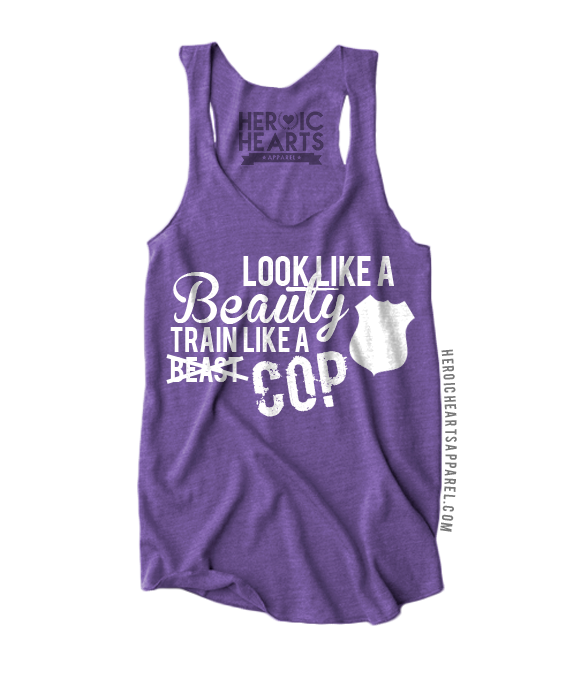 "Look Like A Beauty Train Like A Cop". Choose your apparel option and your print color to make this completely customizable for you! Unsure of sizing? Click here for a size chart.