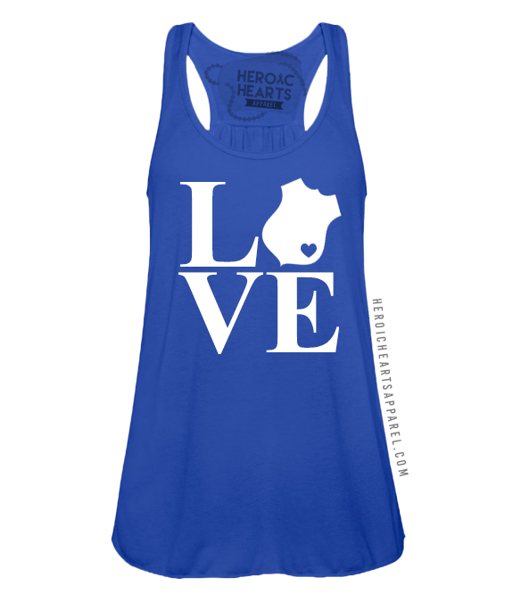 Love square with a police badge in place of the "O". Choose your apparel option and your print color to make this completely customizable for you! Unsure of sizing? Click here for a size chart.