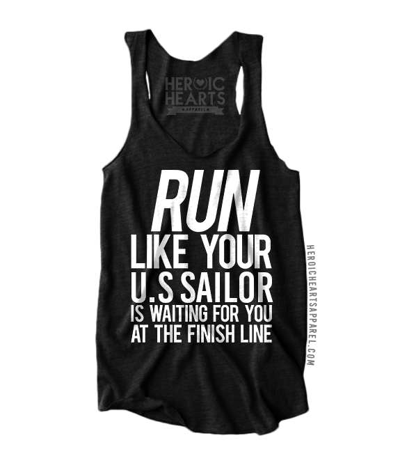 "Run Like Your U.S. Sailor is Waiting At the Finish Line". Choose your apparel option and your print color to make this completely customizable for you! Unsure of sizing? Click here for a size chart.
