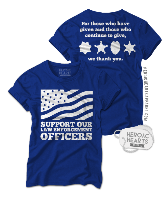 Not only do we suppport our troops, we love and support our LEO's as well. The front design will read "Support Our Law Enforcement Officers", and back will read "For those who have given and those who continue to give, we thank you".